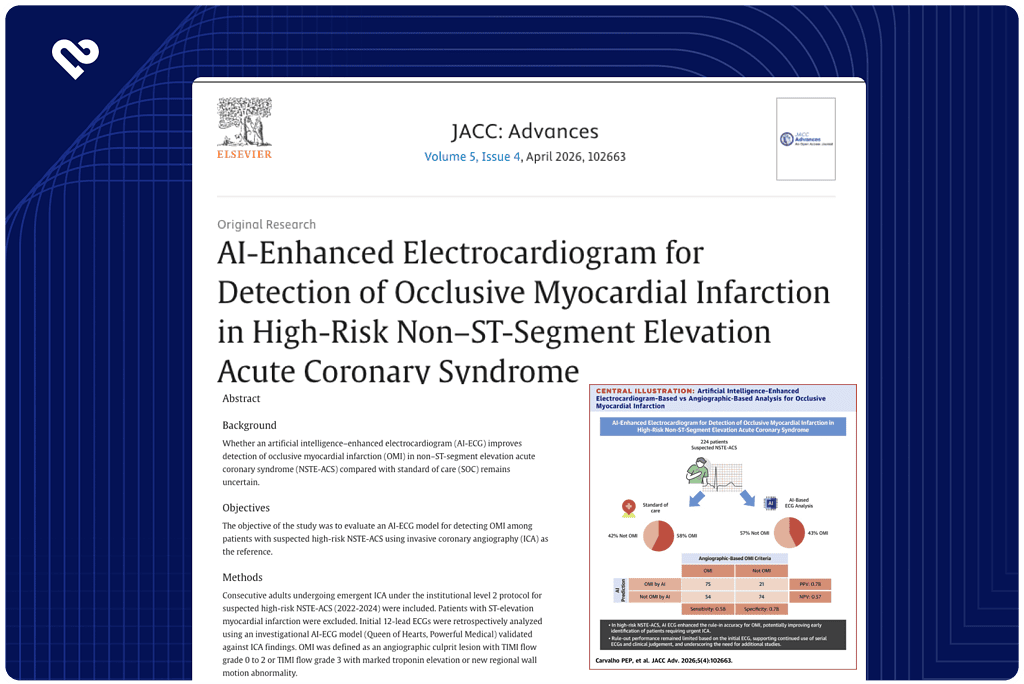 This study evaluates an AI-enhanced ECG model for detecting occlusive myocardial infarction (OMI) in patients with high-risk non–ST-segment elevation acute coronary syndrome, using angiography as the reference. The model improved rule-in accuracy with high specificity (78%) and reduced false-positive cath lab activations compared with standard care, while rule-out sensitivity remained limited on the initial ECG. Serial ECG analysis improved detection, supporting the use of AI as a triage aid alongside clinical judgment rather than a standalone diagnostic tool.